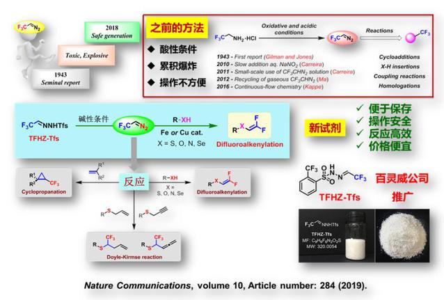 近日,MK体育在线官网化学学院毕锡和教授课题组的研究成果“Use of trifluoroacetaldehyde N-tfsylhydrazone as a trifluorodiazoethane surrogate and its synthetic applications”(“三氟乙醛N-邻三氟甲基苯磺酰腙作为三氟...