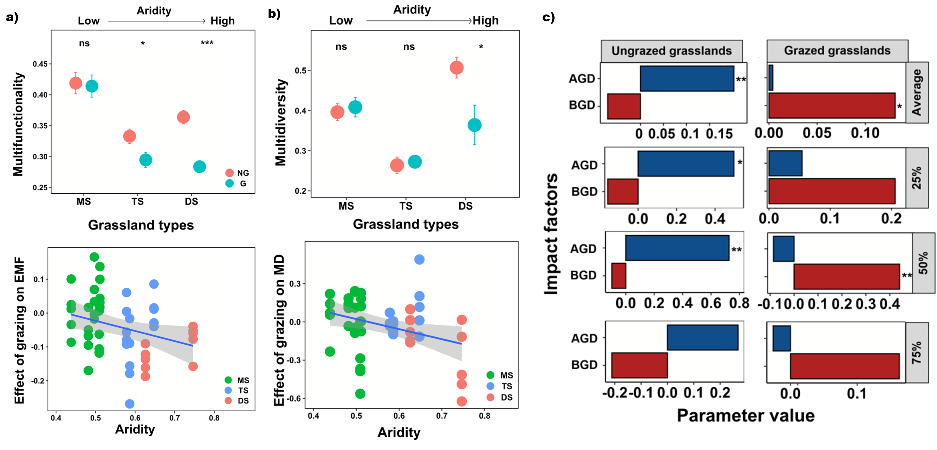 图:放牧草地生物多样性、生态系统多功能及其关系变化