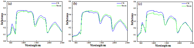 图3 SO2胁迫下城市绿化树叶片光谱反射率曲线 (a) 紫丁香 (b) 红叶李 (c) 金叶榆