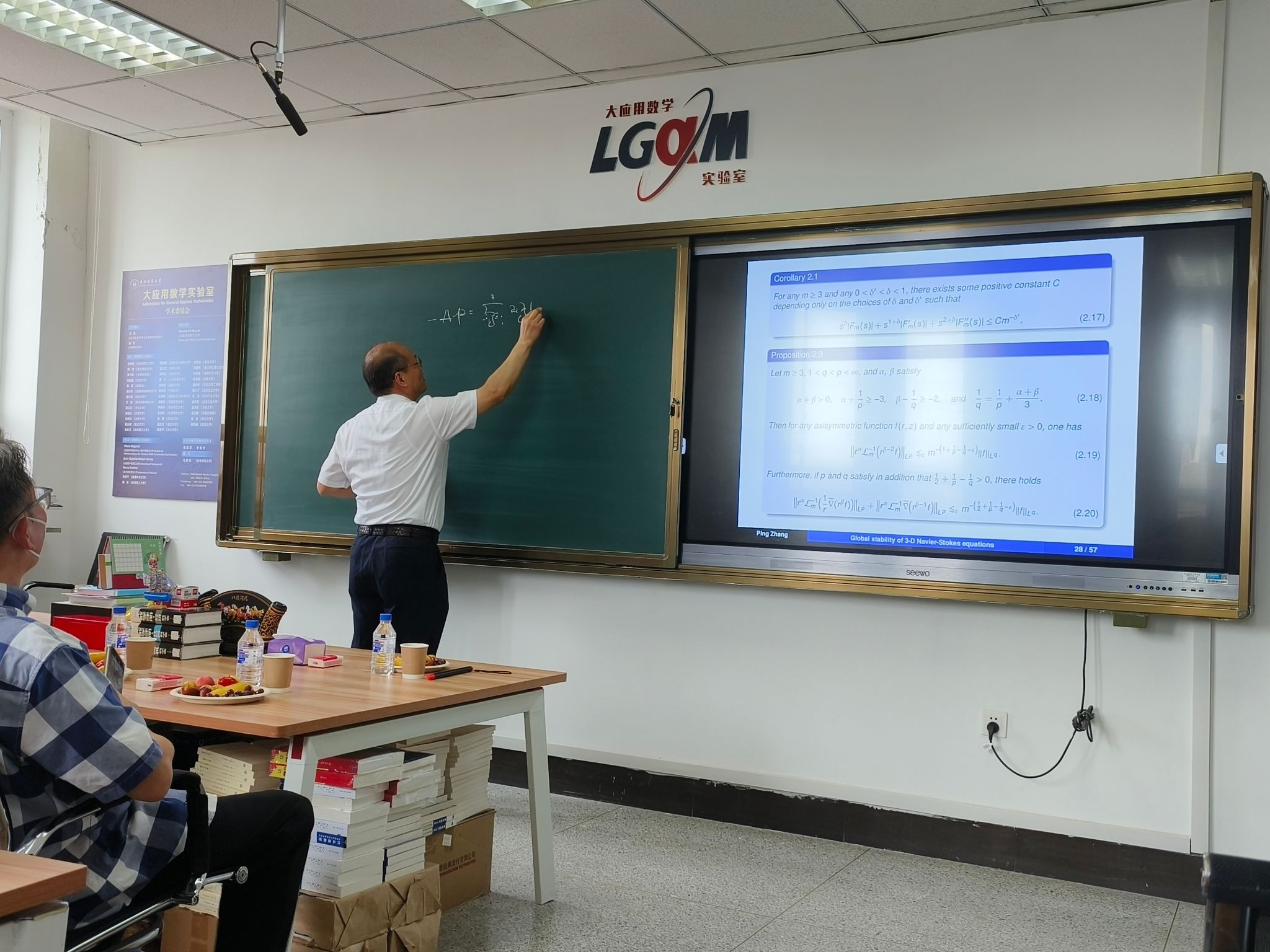 在报告中,张平院士首先对千禧年世界著名数学难题之一的不可压Navier-Stokes方程解的适定性问题进行了深入浅出的介绍,并且对相关问题的国际最新进展给予了系统阐述。