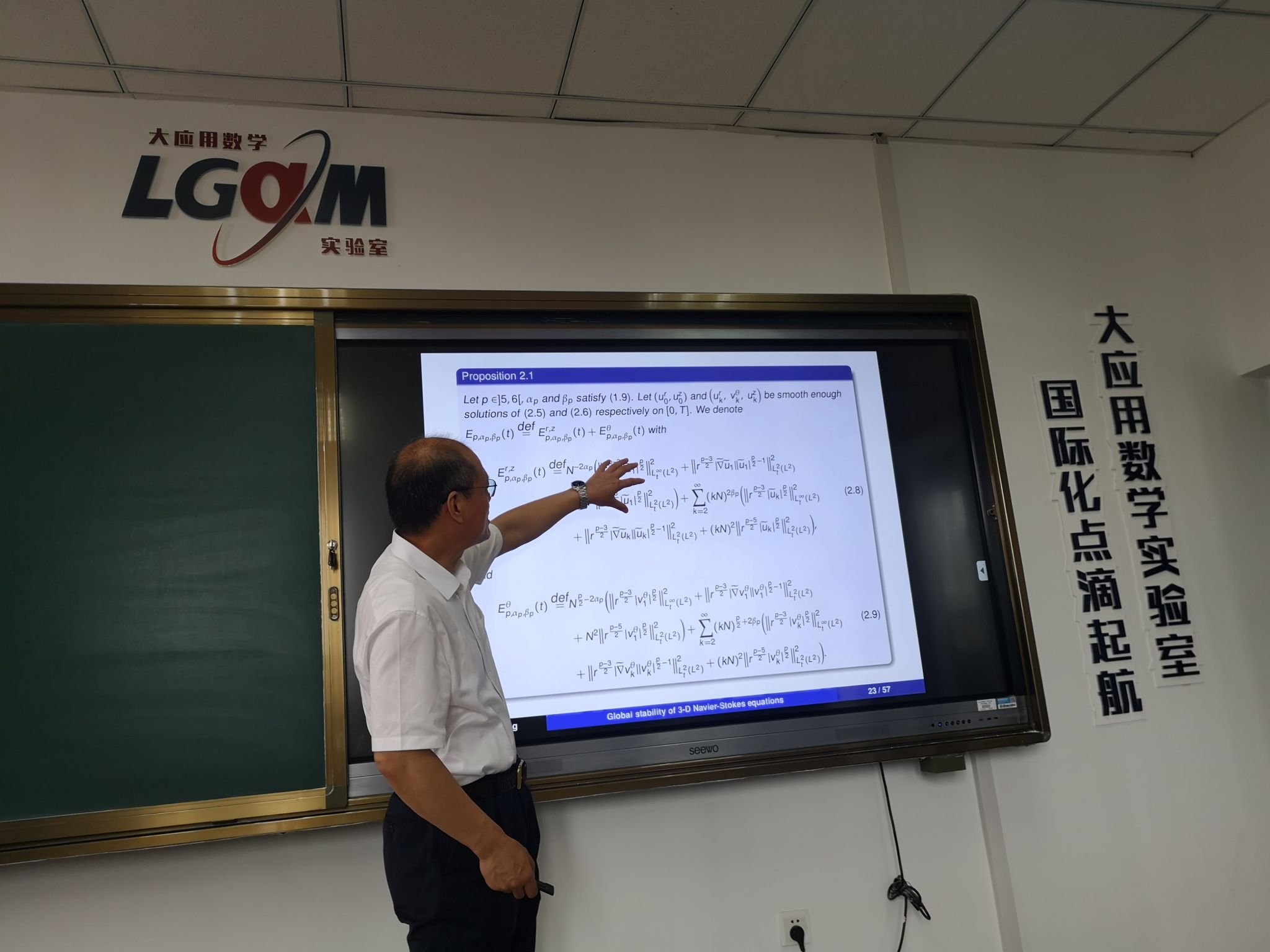 2024年8月12日,著名数学家、中国科学院院士、中国科学院数学与系统科学研究院院长张平教授应邀莅临MK体育在线官网数学与统计学院大应用数学实验室讲学,为广大师生做了题为“Global stability of large Fourier mode for 3-D anisotropic Navier-Stokes equations in cylindrical domain”的学术报告。学术报告会由张凯军教授主持。相关在校师生参加了此次报告会。