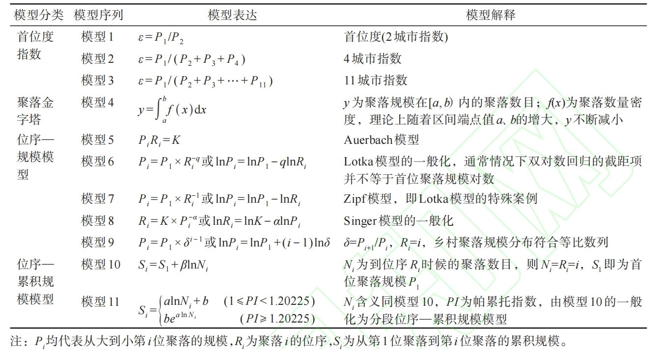 表1 聚落规模分布模型整理