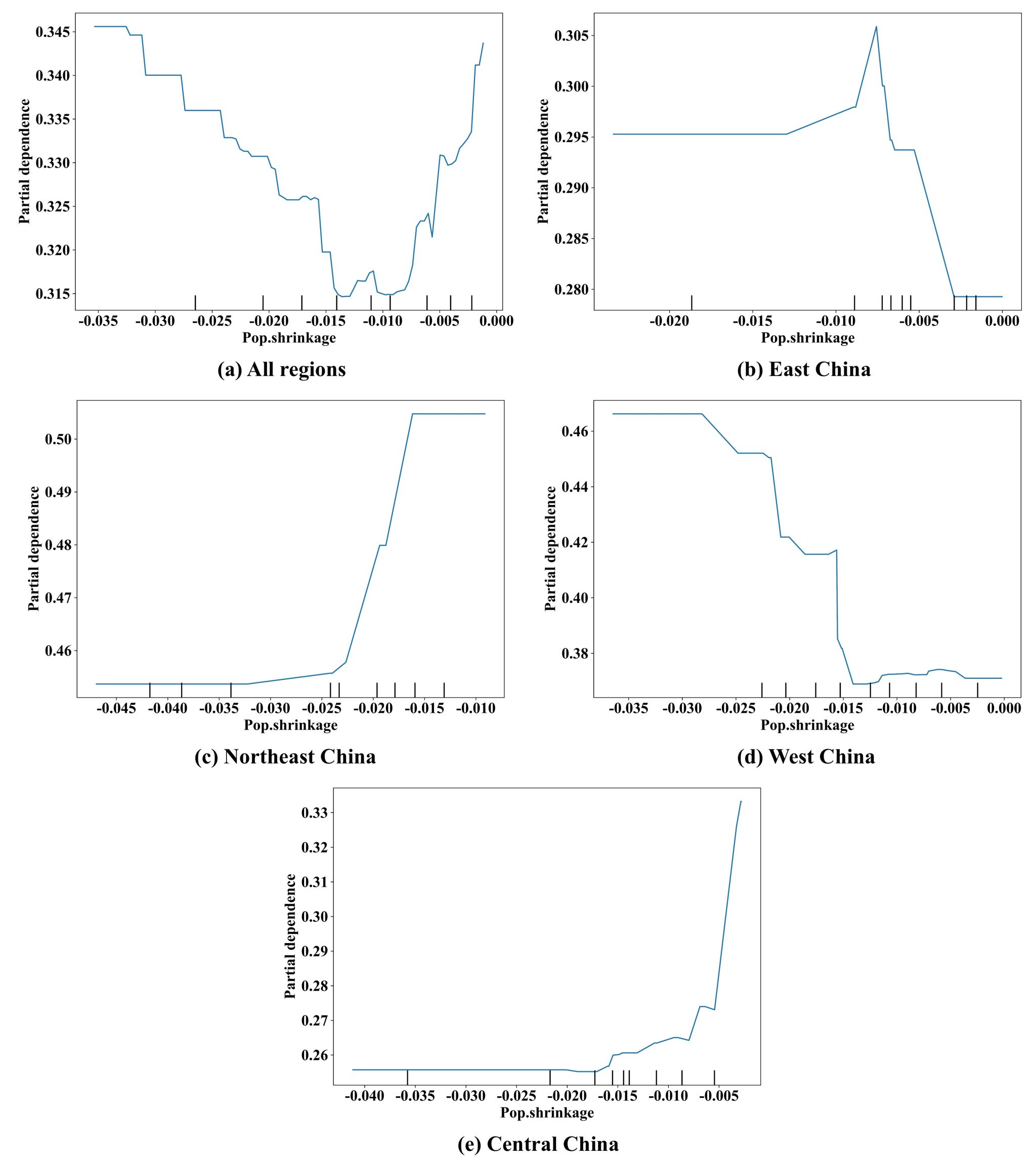图3 城市收缩与碳排放强度的一维部分依赖图