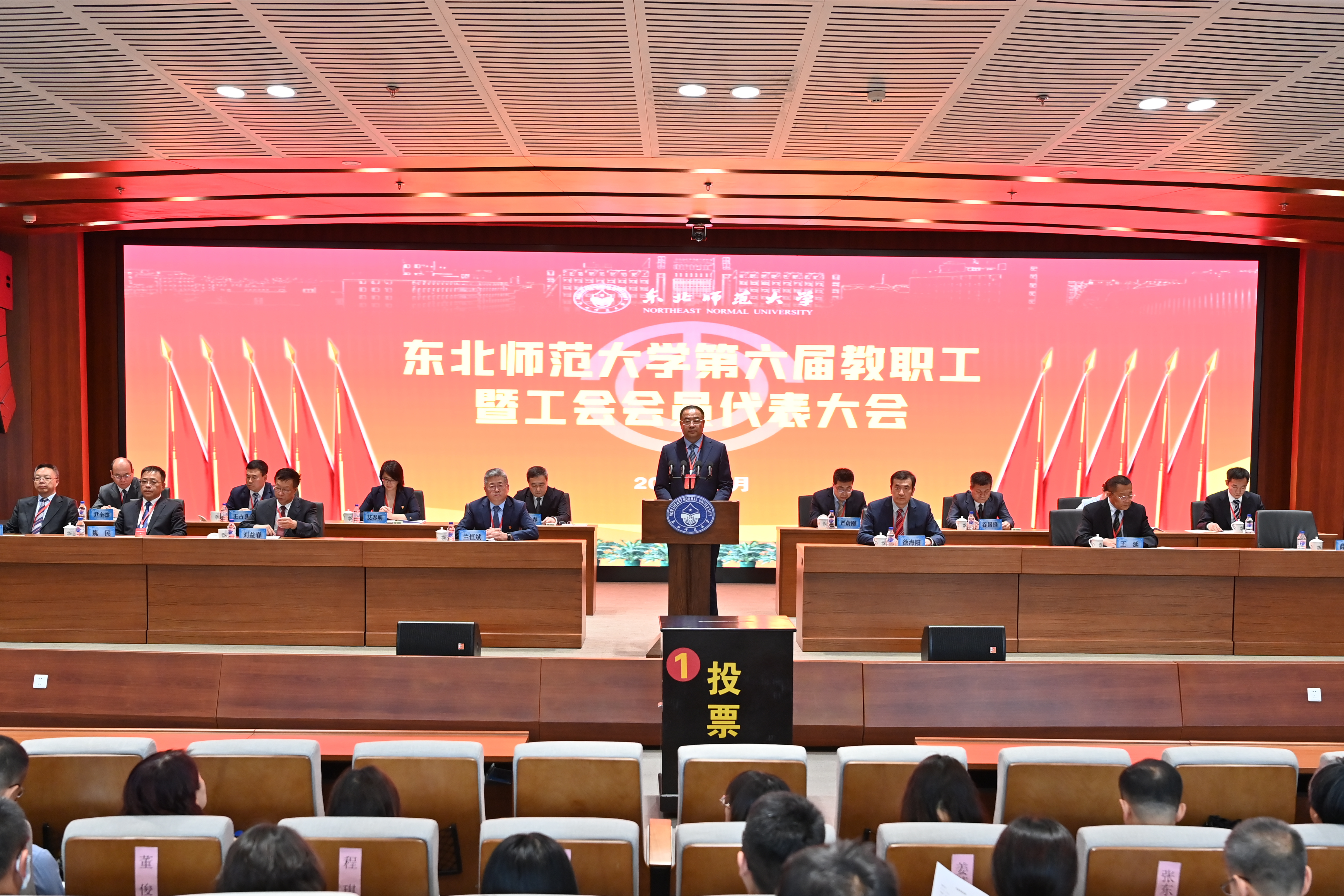 会上,首先宣读了吉林省教科文卫体工会委员会致大会的贺信。随后,高健代表长春市总工会向大会致辞,对MK体育在线官网工会、教代会的工作给予了充分肯定并提出了殷切希望。他说,近年来,东北师大工会、教代会在学校党委的正确领导下,牢牢锚定为学校“双一流”建设聚人心、兴文化、增活力、促发展的工作目标,认真履行“忠诚党的事业,竭诚服务教职工”的职责,各项工作取得了扎实成效。他指出,当前,吉林省和长春市正处在转型跨越和全面振兴突破的历史关口,工会工作既面临难得的发展机遇,也面对诸多问题和挑战。东北师大工会组织要进一步认清形势,明确责任使命,增强政治性、先进性、群众性,着重做好四方面工作:第一,坚定政治方向,以新思想凝心聚力铸魂育人;第二,坚持胸怀大局,以新担当服务“双一流”建设;第三,坚持职工为本,以新作为提升教职工生活品质;第四,坚持守正创新,以新突破激发工会工作活力。他希望,东北师大能够继续发挥人才和科技优势,为地方经济社会发展提供更加坚实的人才保障、智力支撑和创新活力。希望新一届学校工会委员会在校党委领导下,踔厉奋发,笃行实干,进一步凝聚全校教职工的智慧和力量,为东师更加辉煌和美好的明天作出新的贡献。