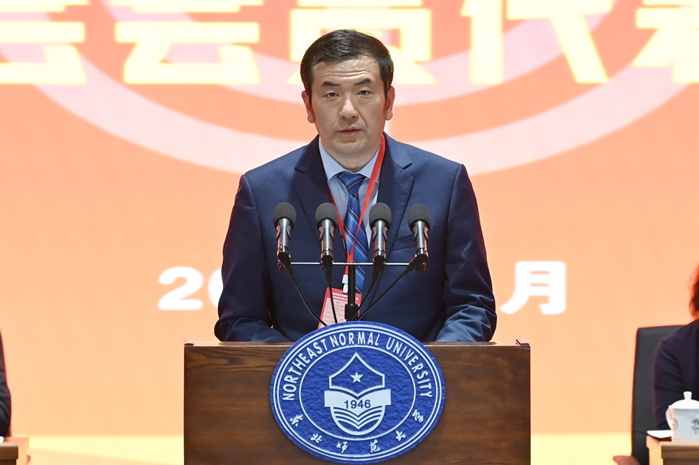 在热烈的掌声中,学校党委书记兰恒斌作了讲话。他说,本次大会政治站位高、会议氛围浓、组织工作好、取得效果实,统一了思想,凝聚了共识,彰显了民主,谋划了发展,坚定了信心,必将对实现学校高质量发展起到巨大的推动作用。兰恒斌代表学校党委,就今后工作提出了三点要求:一是把讲政治作为第一要求,始终坚持党的全面领导。要坚持社会主义办学方向,坚持用习近平新时代中国特色社会主义思想凝心铸魂,坚持勇担教育强国的使命责任。要传承红色基因,抓住主题教育契机,全面把握习近平新时代中国特色社会主义思想的科学体系。认真思考“强国建设、教育何为,教育强国、东师何为”的重大命题,扛好为基础教育服务的大旗、找准国家战略需求。二是把促发展作为第一要务,加快推动学校治理体系与治理能力现代化。他指出,全校要从净化政治生态和学术生态入手,进一步提高发现问题、解决问题、调查研究、攻坚克难的能力。要在发挥民主监督作用上发力,健全民主监督运行机制。要凝聚最广大教职员工的智慧和力量,共同推动学校事业再上新台阶。三是以惠民生作为第一追求,不断提升全校教职工的获得感、幸福感。他希望全体代表强化服务意识、提高服务能力、挖掘服务潜力,在汇聚民心、反映民意、改善民生上持续发力。最后,兰恒斌号召全校师生员工团结一心、砥砺奋进,在建设世界一流师范大学的道路上不懈奋斗,为加快建设教育强国作出新的更大贡献。