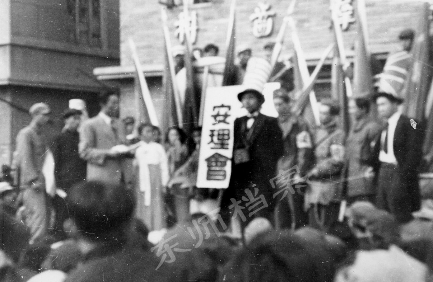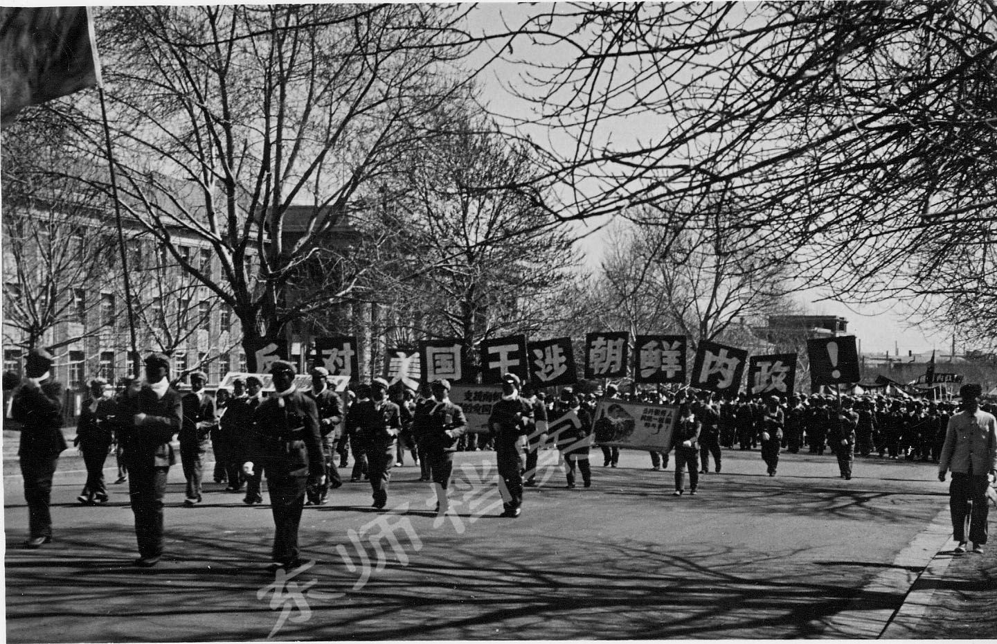 1950年10月MK体育在线官网师生高举宣传标语,上街举行爱国游行