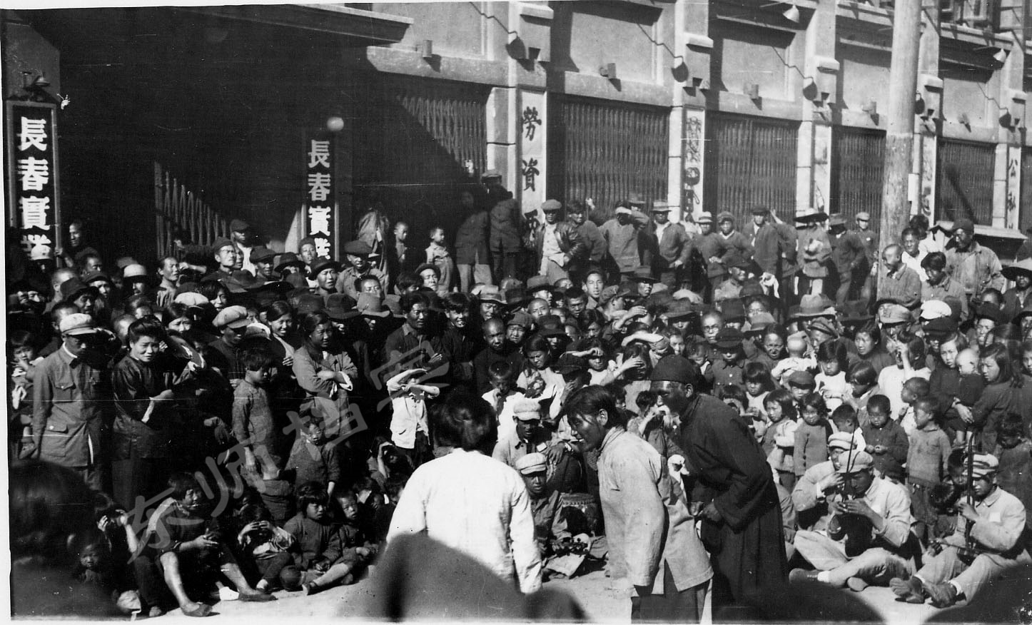 1950年11月MK体育在线官网宣传队在街头进行抗美援朝宣传演出