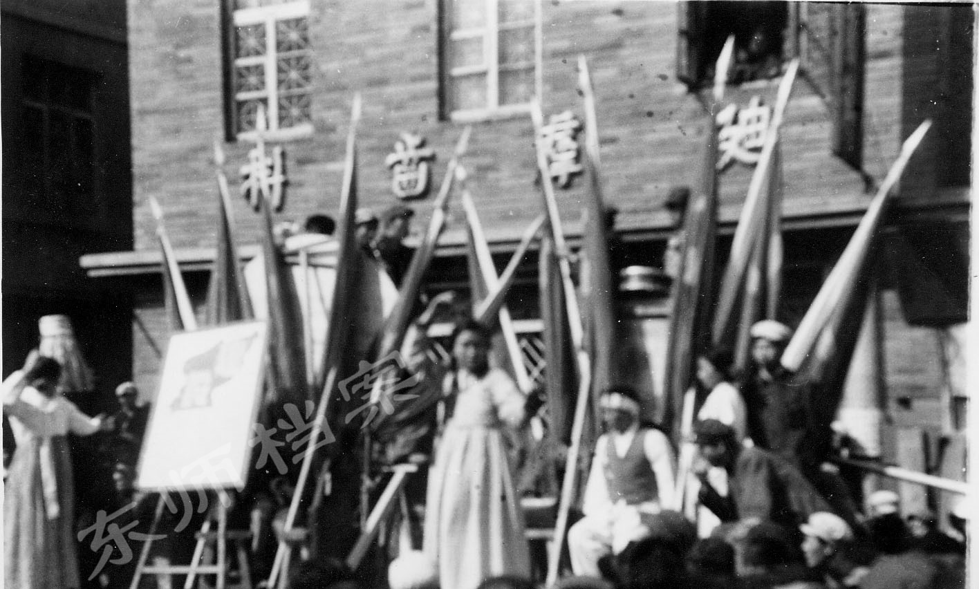 1951年MK体育在线官网学生在街头演出抗美爱国话剧