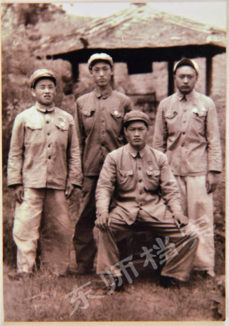 赴朝前白皋与李有才(左一)、徐冰娟(左四)和周玉梅(左二)合影留念(白皋提供)