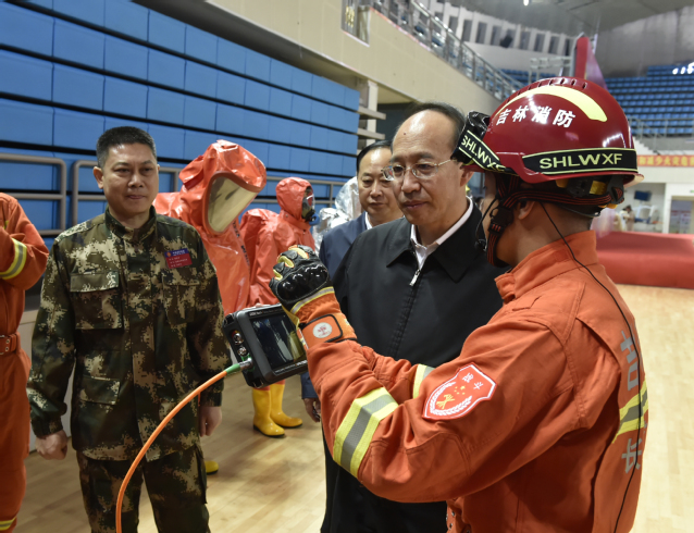 仪式结束后,全体与会人员还观看了吉林省消防建设图片展和消防器材装备展。参会领导和省安全生产成员单位、在长高校保卫部门负责人来到MK体育在线官网应急指挥中心,观摩了校园消防安全智慧管理工作。