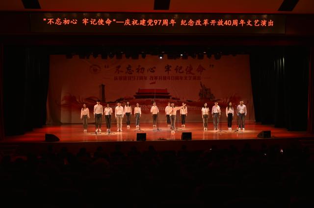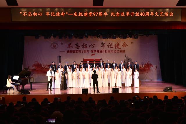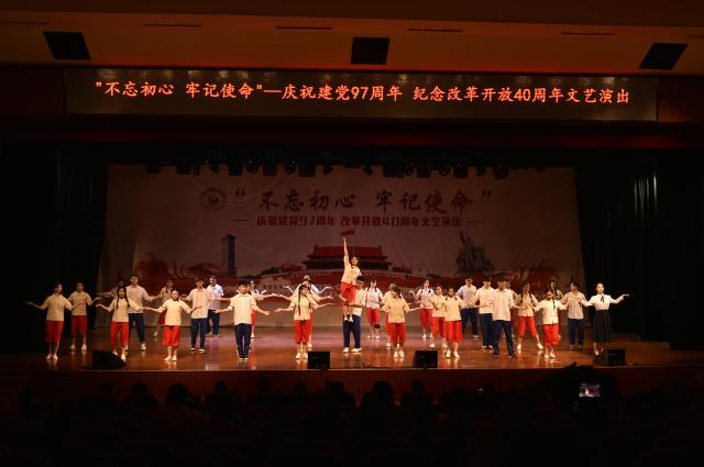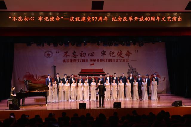 夏日微风起,荷花满塘香。为庆祝建党97周年、改革开放40周年,6月29日,学校在净月校区音乐厅隆重举行了“不忘初心、牢记使命”庆祝建党97周年、改革开放40周年文艺演出。本次演出由党委宣传部、校工会、校团委、音乐学院联合主办,教职工艺术协会、大学生艺术团、音乐学院团委承办。学校党委副书记王延,党委副书记兼纪委书记兰恒斌,各机关部处、学院(部)有关负责人等与广大师生一同观看了演出。