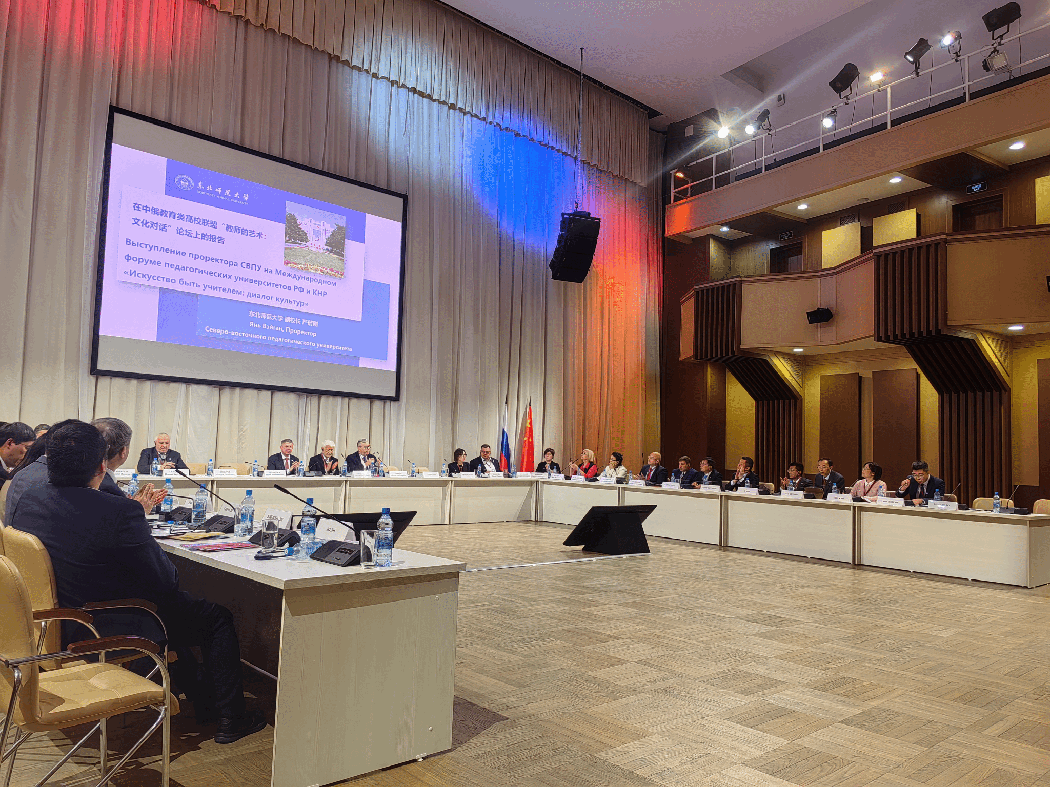 11月7日,严蔚刚出席在俄罗斯雅罗斯拉夫尔国立师范大学举行的中俄教育类高校联盟“教师的艺术:文化对话”论坛。会上,他介绍了学校发展进程,学科特色和对俄教育合作情况,并围绕着“教师的艺术:文化对话”主题,从全球化背景下,教师在文化对话中的作用、面临的挑战和能力提升三方面和与会学者做了分享。
