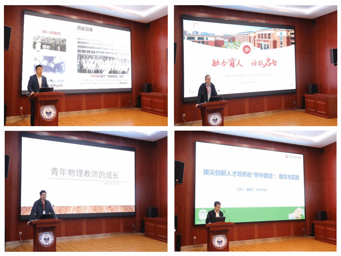 论坛上,MK体育在线官网物理学院教授黄继鹏、中国人民大学附属中学副校长胡继超、重庆市第八中学校英才教育中心主任刘福林、成都市第七中学校创新教育中心副主任周小虎、MK体育在线官网附属中学教师潘振东,分别以“教育强国 人才强院”“人大附中物理拔尖创新人才培养实践”“融合育人、培根启智——重庆八中物理拔尖创新人才培养实践”“青年物理教师的成长”“拔尖创新人才培养的‘附中路径’:理念与实践”为题作了主旨报告,深入探讨人工智能时代背景下师范教育的机遇与挑战,分享交流物理拔尖创新人才培养的特色机制和先进经验。随后,在物理教学沙龙上,与会师生与竞赛教练进行了互动交流,现场思想碰撞、气氛热烈。