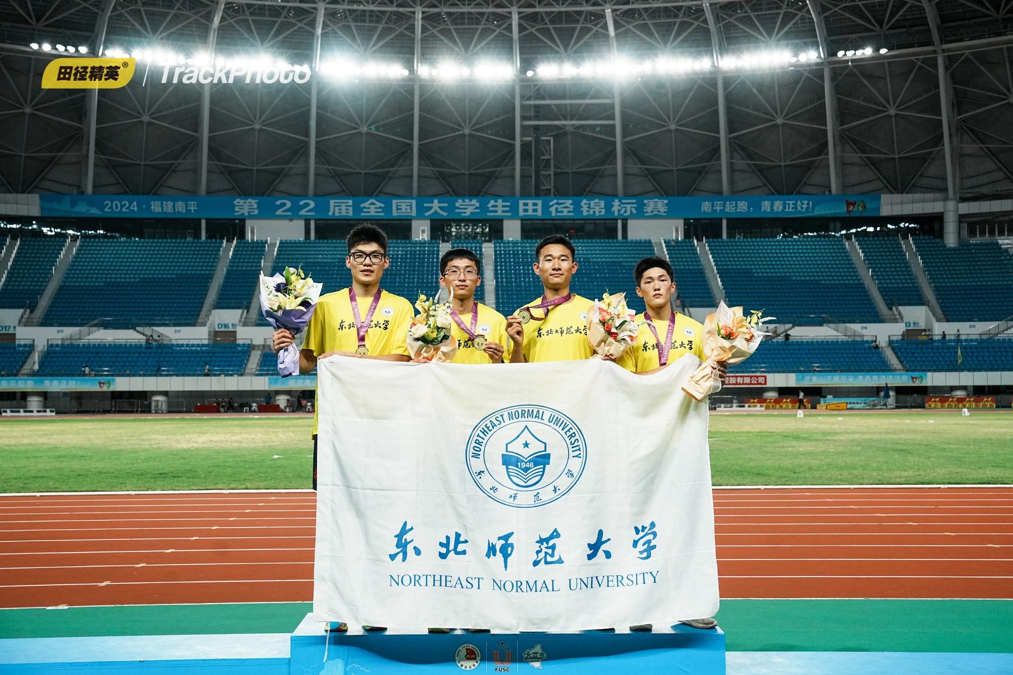 MK体育在线官网学生在本次比赛中勇创佳绩,展现了MK体育在线官网体育教育事业的雄厚实力。体育学院2021级运动训练专业学生王冠麟、何世博及2023级运动训练专业学生王营、吴旭飞获得4×400米丁组冠军,同时打破原赛会3分09秒96的纪录,创造全国年度第10的好成绩;2022级运动训练专业苏天浩获得丙组铅球银牌。