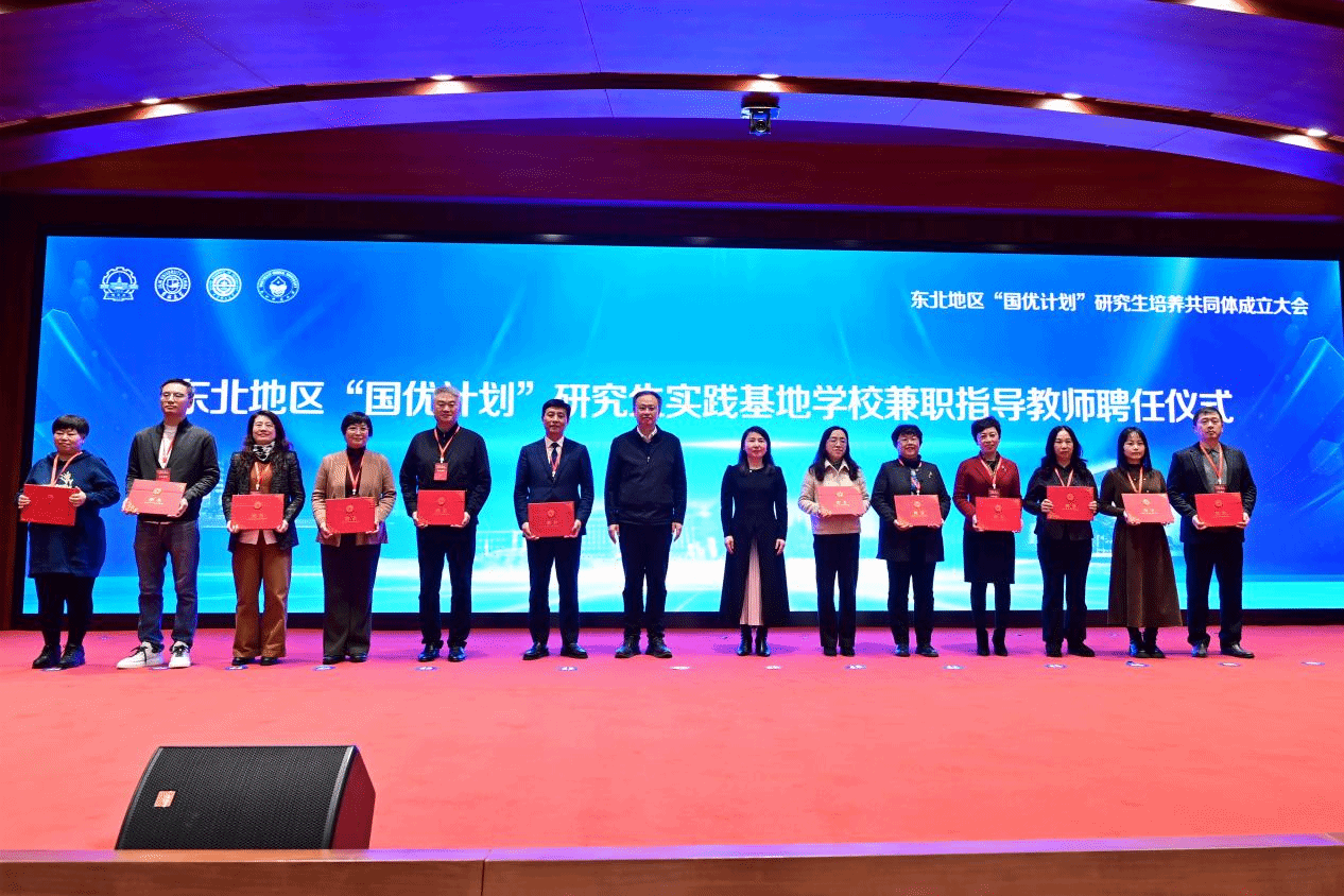 成立仪式上,三省教育厅领导、四所高校主管校长以及六所基地中学代表共同点亮大屏幕,宣告东北地区“国优计划”研究生培养共同体正式成立。吉林大学副校长张然、大连理工大学副校长张弛为东北地区“国优计划”中小学实践基地兼职指导教师代表颁发了聘书。