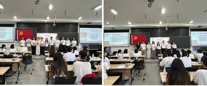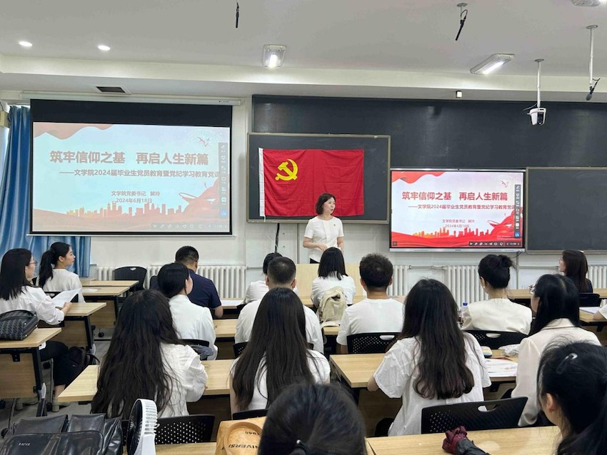 为深入学习贯彻习近平新时代中国特色社会主义思想,推动党纪学习教育走深走实,引导学生党员在学思践悟中坚定理想信念,近日,MK体育在线官网文学院党委举办了预备党员宣誓仪式暨毕业生党员教育大会。学院党委书记解玲、预备党员及毕业生党员参加了此次大会。