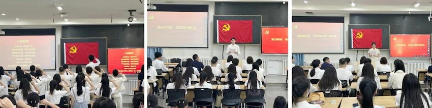 宣誓仪式在庄严的国际歌中拉开了序幕。学院2024年新发展的党员进行了入党宣誓,毕业生党员重温了入党誓词。新党员代表和毕业生党员代表分别向党组织作出郑重承诺,表示将在未来的学习、生活中以实干托举梦想,让信仰与青春同行。