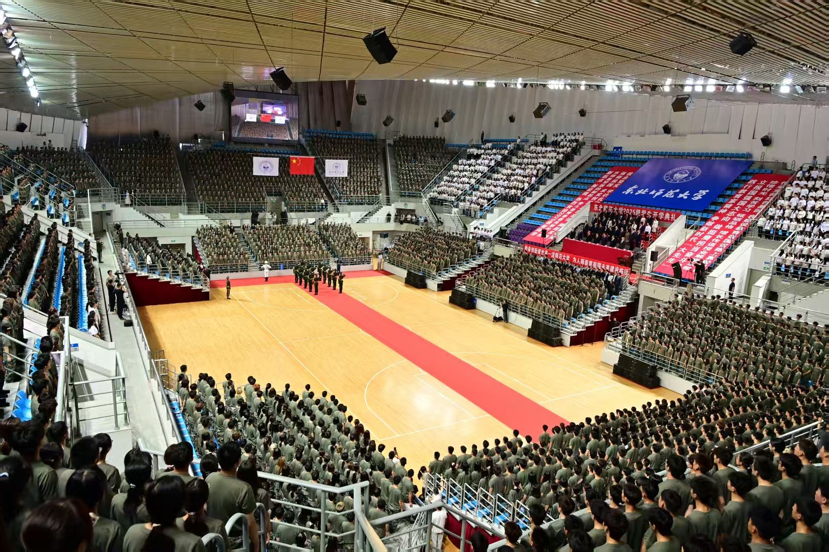 徐海阳代表学校向圆梦东师、开启新程的同学们表示欢迎,并以《独行者快 众行者远》为题为新生带来了“开学第一课”,从学校深厚的红色基因出发,诠释了个人探索与集体协作的成长辩证法。他表示,今年是中国人民抗日战争暨世界反法西斯战争胜利80周年,明年是学校建校80周年,从建校之日起,许党报国就成为东师最鲜亮的精神底色,从延安革命先贤筚路蓝缕创办“新型的东北大学”,到新时代以来锚定“世界一流师范大学”目标,一代代东师人始终心怀“国之大者”,为党育人的使命不变,强师报国的担当不改。作为新的东师人,希望大家传承红色基因,踔厉奋发、勇毅前行,为建设教育强国、科技强国、人才强国贡献力量。