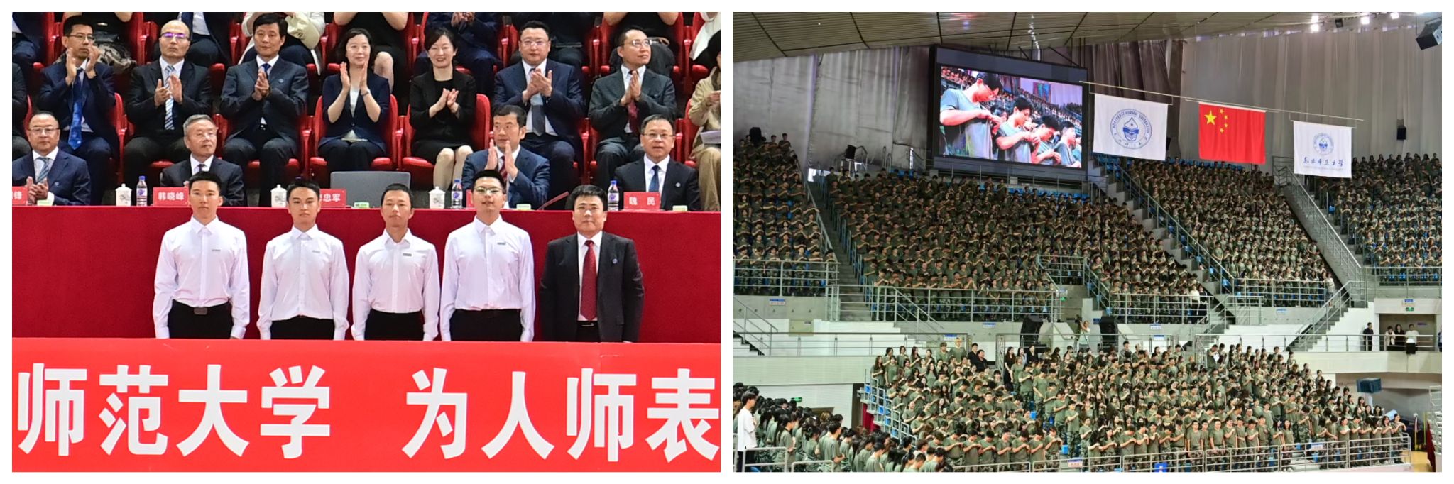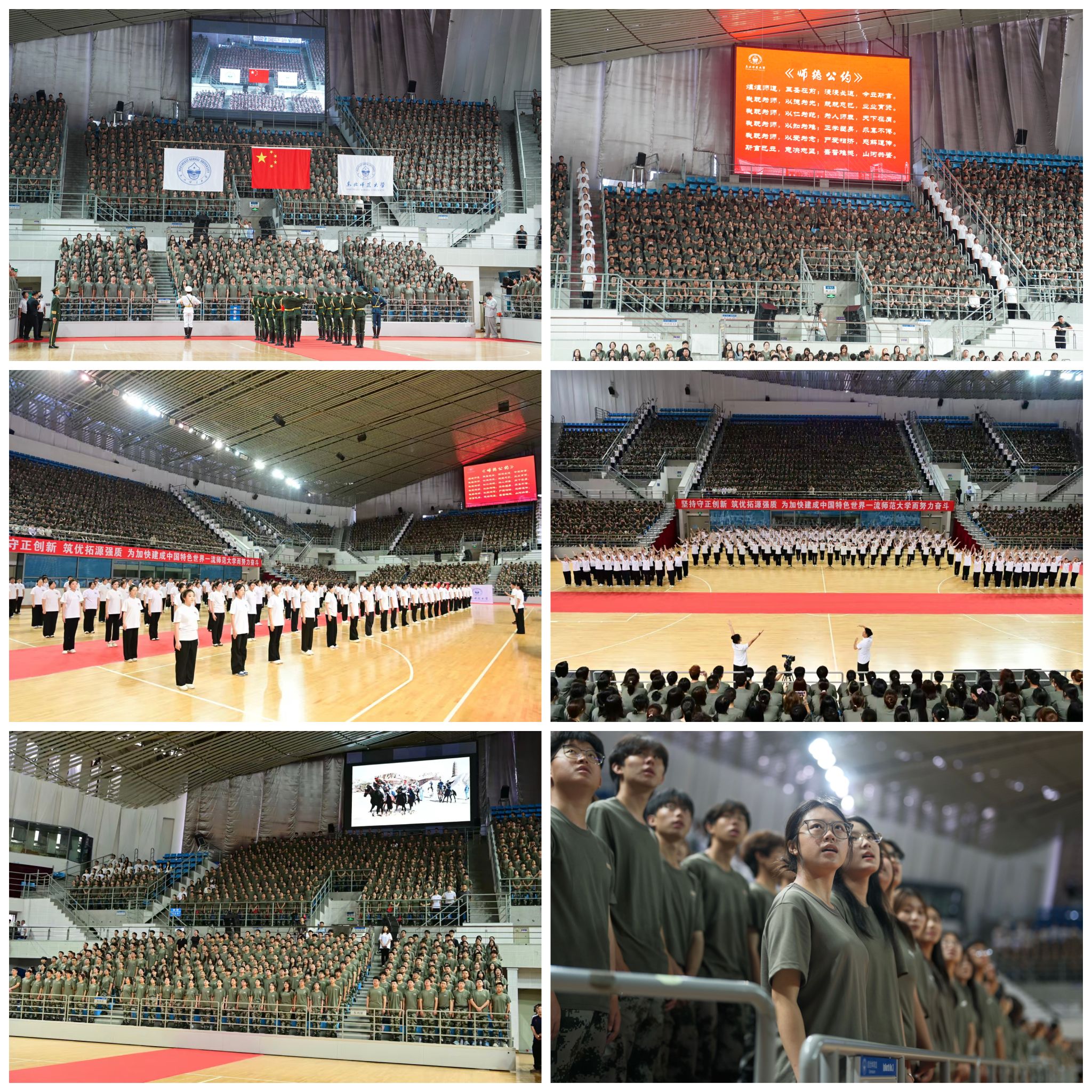 最后,在全体师生齐唱的校歌声中,开学典礼圆满结束。典礼开始前,学校“扬思合唱团”与全体师生现场齐唱了《有我》和学校原创主题歌曲《师德公约》,展现了东师学子蓬勃向上的青春力量。