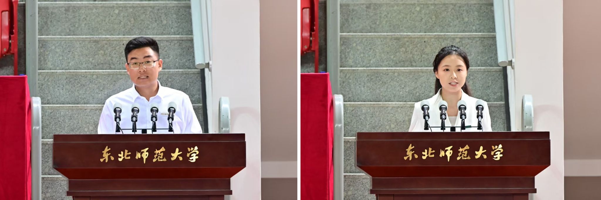 新生代表,政法学院2025级本科生陈熙分享了与东师结缘的经历和从东师先贤事迹中受到的教育和感染。他与大家共勉,作为新一代东师人,要成为东师精神的传承者、全面成长的追梦者、引领未来的探索者;作为新时代青年,要树立科学的历史观、自信的文化观、正确的发展观、不屈的奋斗观、团结的国家观。