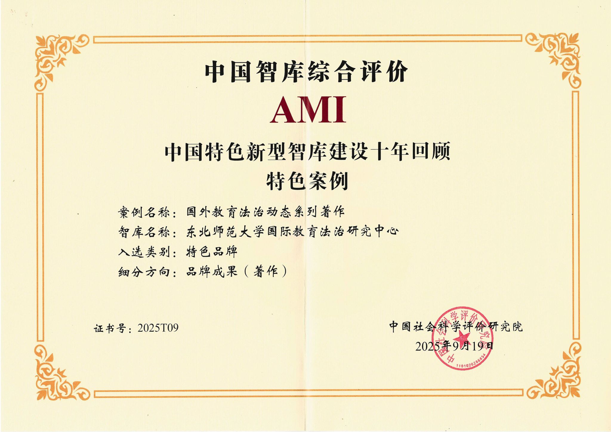 国际教育法治研究中心提交的“国外教育法治动态系列著作”,入选中国特色新型智库建设十年回顾特色案例特色品牌成果(著作);中国农村教育发展研究院提交的“农村校舍闲置难题破解:思路与策略”,入选中国特色新型智库建设十年回顾参考案例特色品牌成果(论文)。这是继2017年中国农村教育发展研究院首次入选“中国核心智库”(AMI)以来,MK体育在线官网在AMI智库评价方面取得的整体性重大突破。