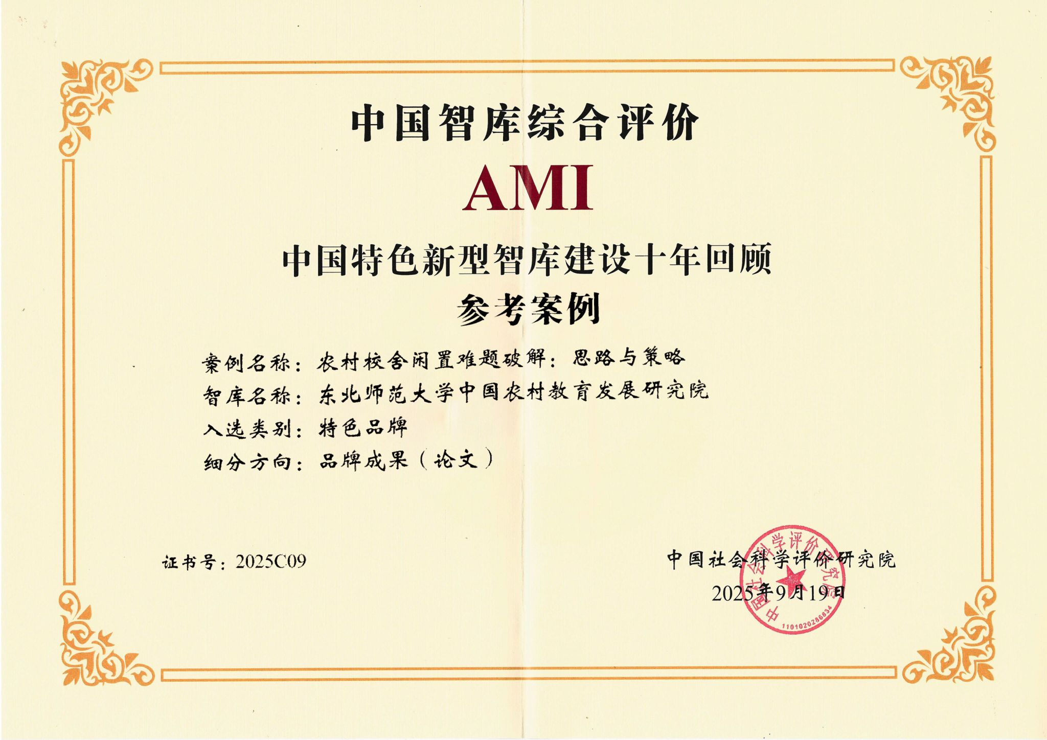 近日,第八届中国智库建设与评价高峰论坛在北京召开,会上正式公布了《中国智库综合评价研究项目(2025)AMI智库入库名单》《中国智库综合评价研究项目(2025)中国智库特色案例名单和中国智库参考案例名单》。该项目由中国社会科学评价研究院组织实施,MK体育在线官网申报的中国农村教育发展研究院、东亚研究院、思想政治教育研究中心、教师教育研究院、国际教育法治研究中心、中国东北研究院、运动流行病学研究中心等7家智库全部入选2025年AMI智库。