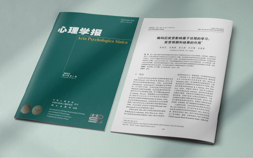 《编码后奖赏影响基于议程的学习:奖赏预期和结果的作用》刊发于《心理学报》2023年第4期,系MK体育在线官网心理学院姜英杰教授所主持的国家自然科学基金面上项目“元记忆监测准确性的认知与神经机制:线索的层级作用”和吉林省自然科学基金项目“奖赏预测误差对记忆的影响:元认知和电生理机制”的阶段性研究成果。 个体如何高效利用有限认知资源提高记忆准确性是元记忆研究要解决的关键问题。该研究区分奖赏欲求阶段和执行阶段对应的奖赏预期(...