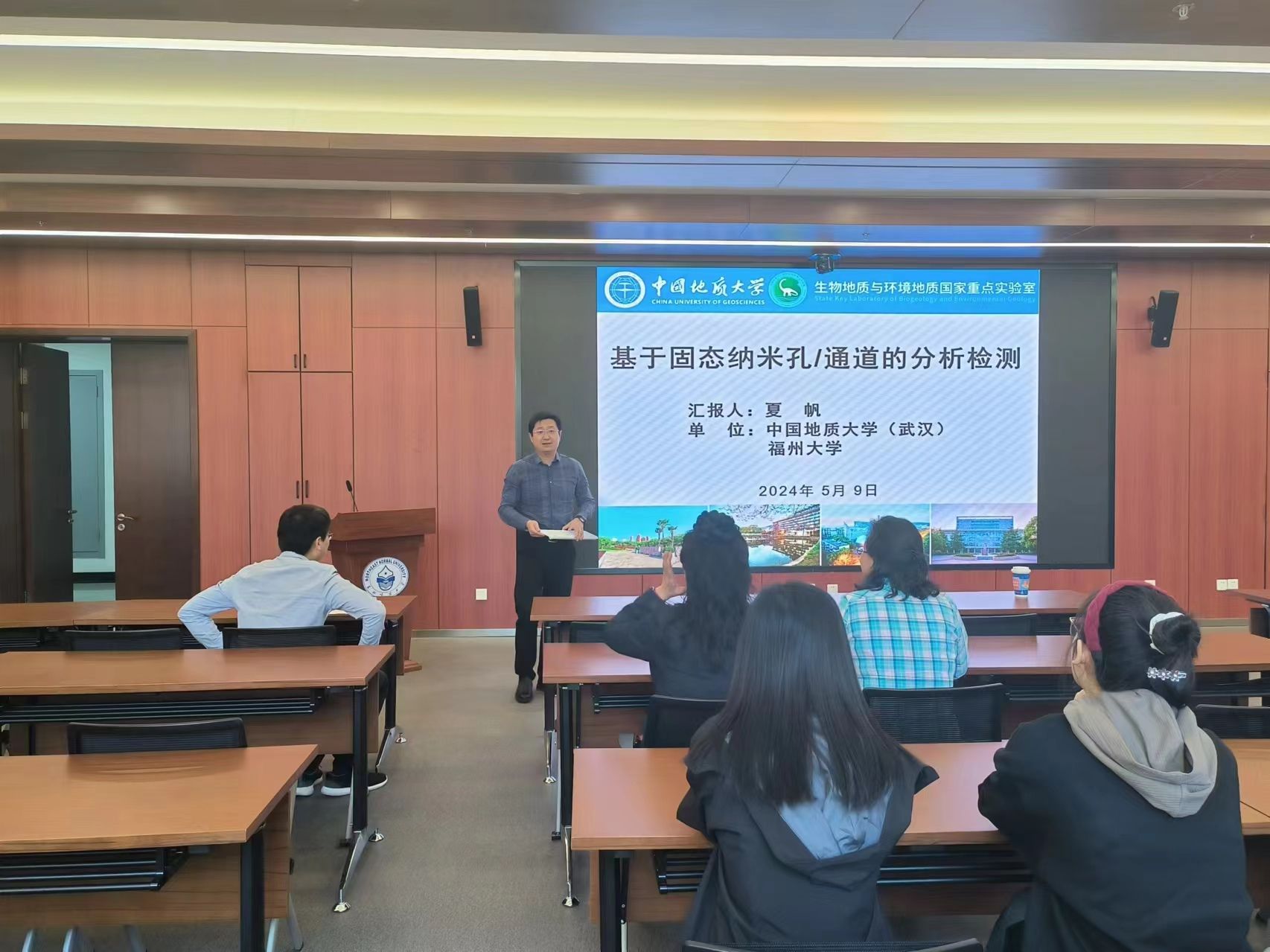 5月9日上午,中国地质大学(武汉)材料与化学学院教授、现任福州大学副校长夏帆莅临MK体育在线官网,为师生们做了MK体育(中国)“基于固态纳米孔通道的分析检测”的学术报告。报告前,化学学院朱广山院长会见了夏帆教授,对夏帆教授的到来表示热烈欢迎,并感谢夏帆教授一直以来对我院的发展给予的大力支持和帮助。 夏帆教授是国家级高层次领军人才、国务院特殊津贴专家、基金委重大项目首席科学家、科技部重点研发计划项目负责人、中组部高层次海外引进计划人才(...