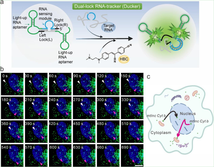 近日,MK体育在线官网药物基因和蛋白筛选国家工程实验室赵永云研究员团队在生物传感器研发领域取得重要进展。该团队成功开发了一种名为“双锁RNA追踪器”(Ducker)的新型无标记基因编码生物传感器。这一创新性成果通过独特的构象转换策略,实现了对活细胞中天然RNA时空动态监测,为研究RNA在细胞内的复杂动态反应网络提供了一个通用且稳健的平台。相关成果以“Allosteric genetically encoded biosensor for spatiotemporal monitoring o...