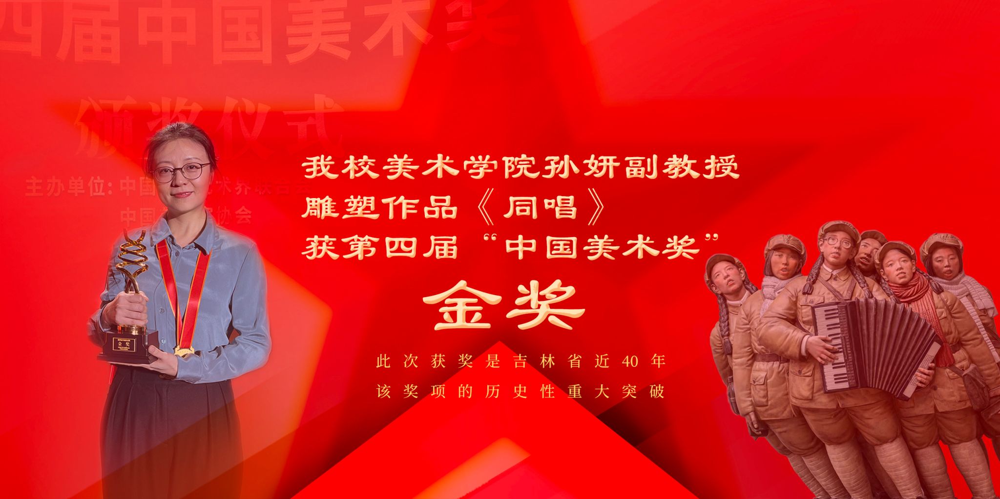 MK体育在线官网美术学院孙妍副教授雕塑作品《同唱》获第四届“中国美术奖”金奖